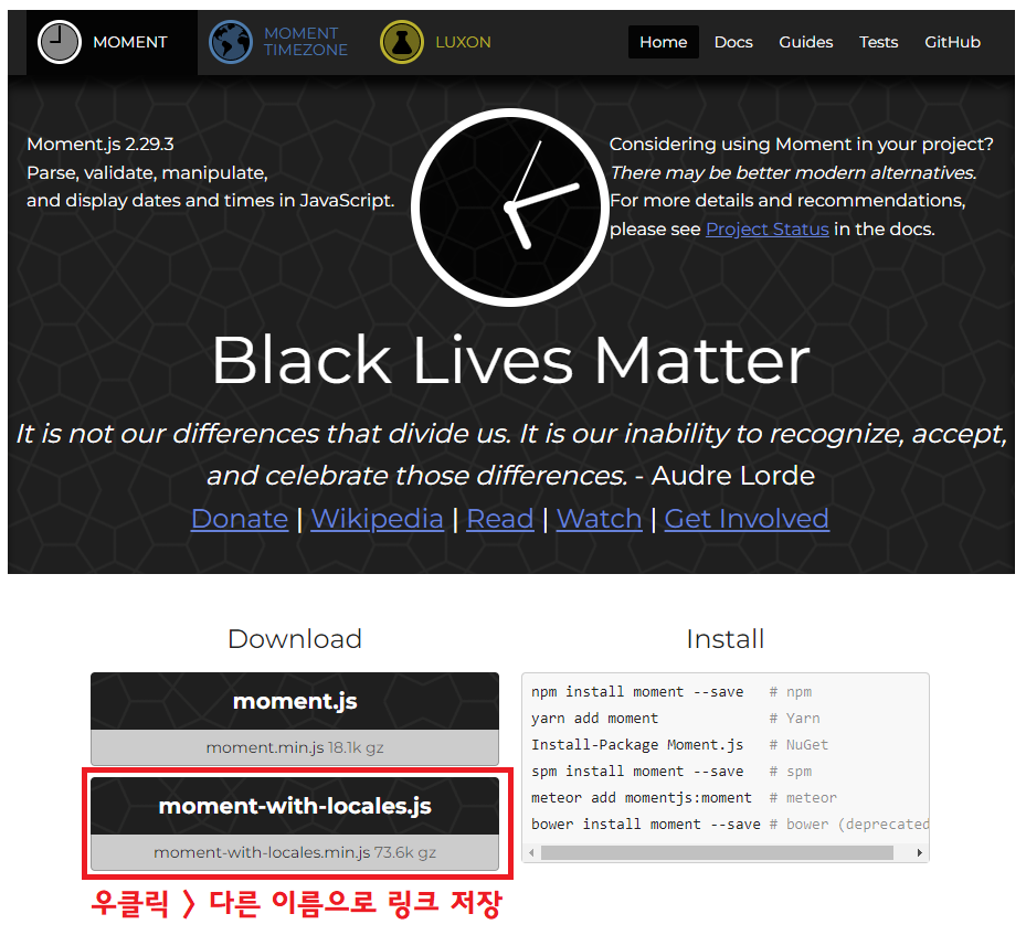 - moment-with-locales.js 다운로드 (우클릭>다른 이름으로 링크 저장)