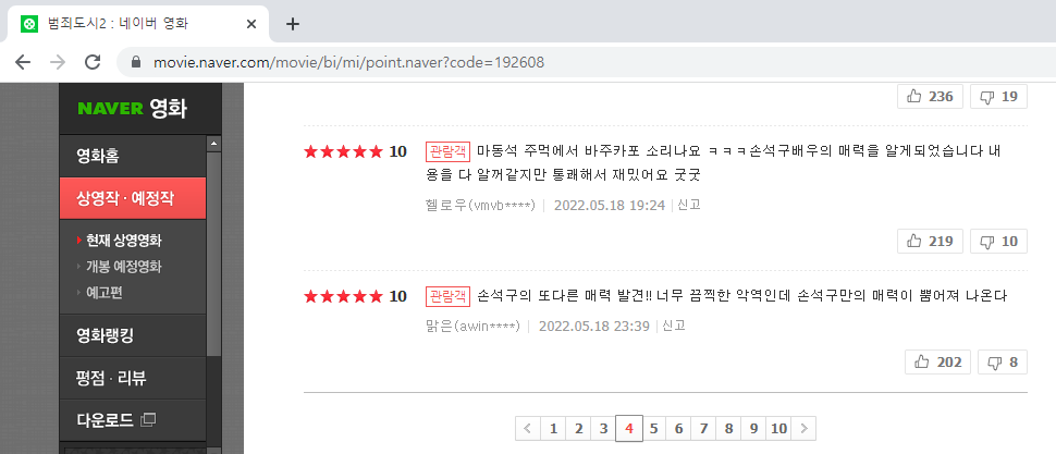 2페이지 > https://movie.naver.com/movie/bi/mi/pointWriteFormList.naver?code=164122&page=2
