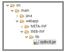 - 오라클 DB 라이브러리 붙이기 : src>main>webapp>WEB-INF>lib>ojdbc8.jar