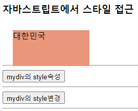 <input type="button" value="mydiv의 style변경" onclick="test2()">