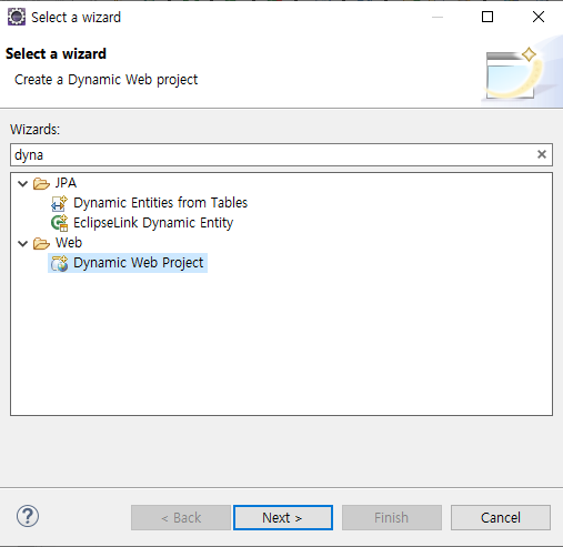 - New → Dynamic Web Project → Project name: myweb