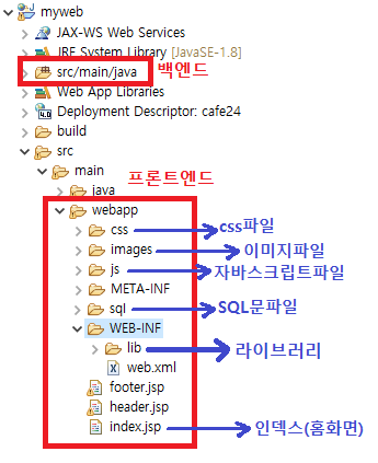 - 프론트엔드 작업물 저장 : src/main/webapp (css, images, js, sql)