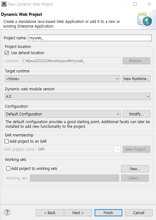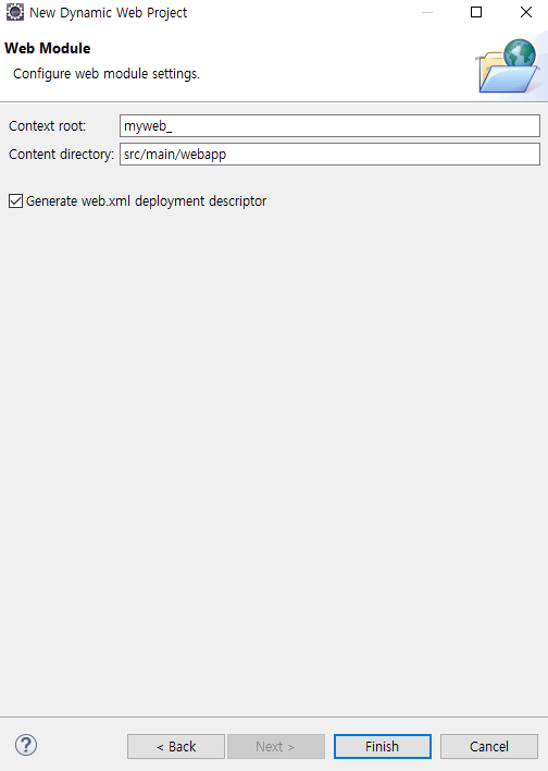 - New → Dynamic Web Project → Project name: myweb