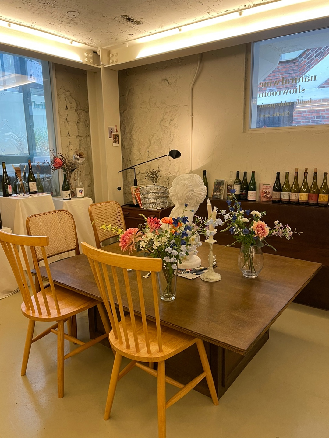 내 자리 뒤쪽에 와인이 진열되어 있었는데