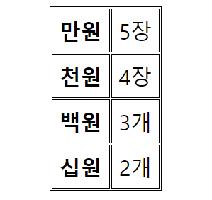 단, 5만원권과 5천원권은 없다고 가정하며, 표는 <body>의 <div id="demo">에 출력한다