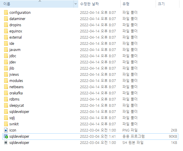 - 압축을 푼 후 sqldeveloper 파일 실행