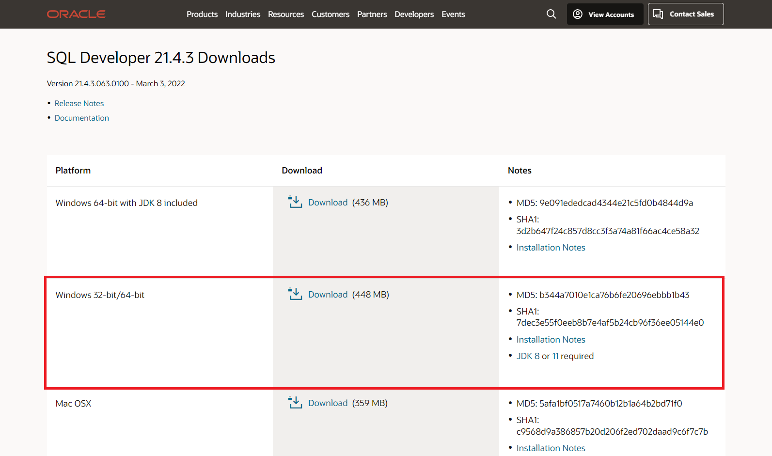 - 다운로드 링크 : https://www.oracle.com/tools/downloads/sqldev-downloads.html