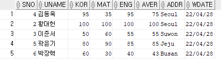 select distinct addr from sungjuk; --중복하는 addr 한번만 선택