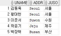 select addr from sungjuk; --모든 칼럼의 addr 선택