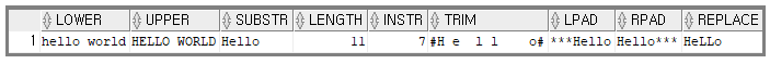 ,rpad('Hello', 8, '*') -- Hello*** (8칸내에서 출력, 오른쪽 빈칸은 *로)