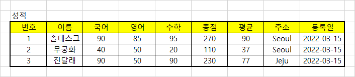 - 테이블에 들어갈 데이터를 엑셀 등의 툴을 이용해 몇개 넣어보며