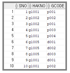 - 총 3개의 테이블: 학생(student), 과목(subject), 수강(enroll)