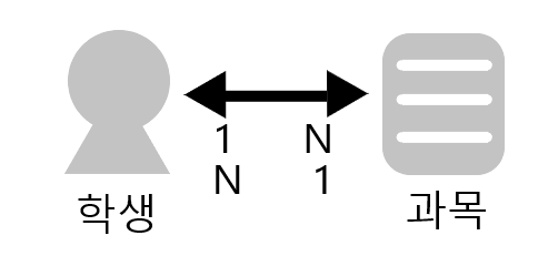 - 학생과 과목은 다대다(N:N) 관계 : 학생 1명이 N개의 과목을 들을 수 있고,