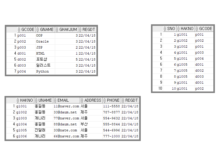 - 학사관리 관련 테이블을 이용한 테이블 조인 연습문제