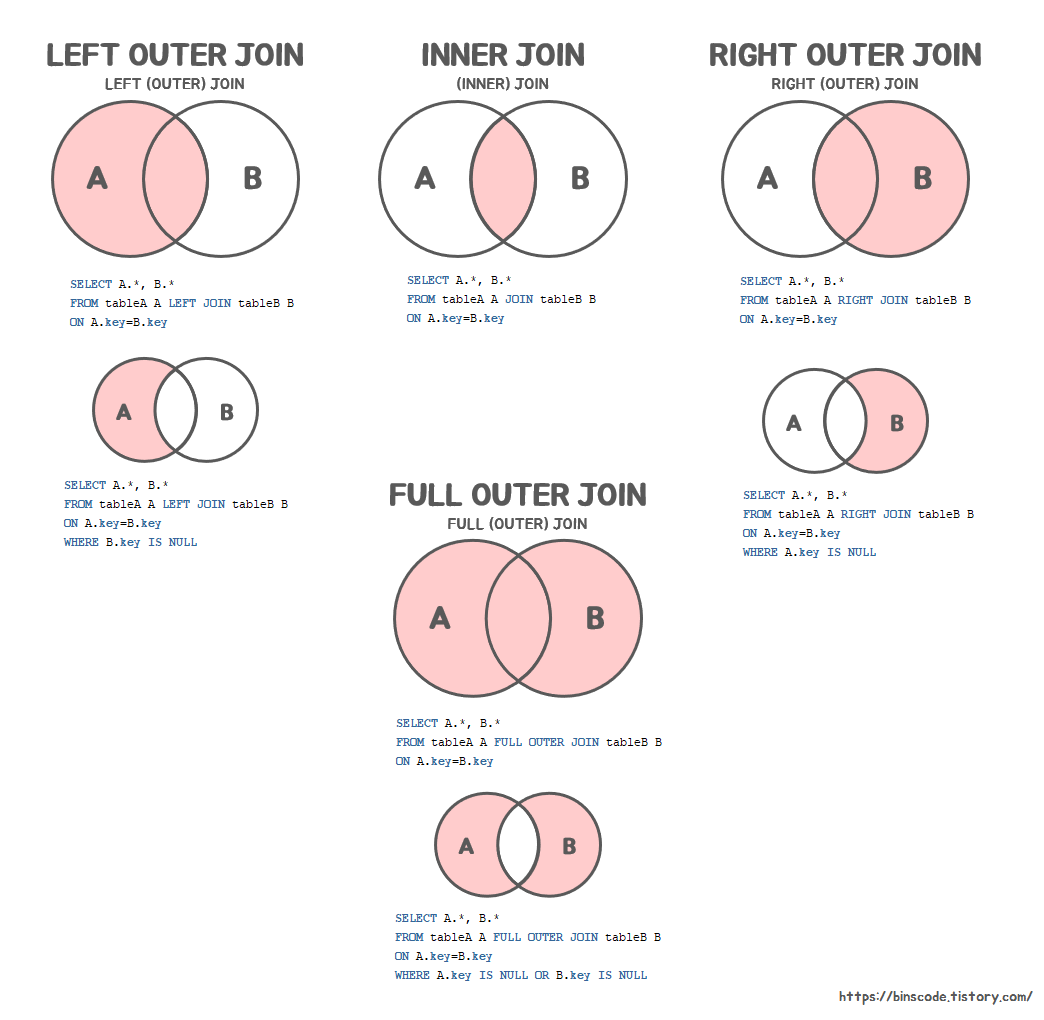 from tableA A left join tableB B --outer생략가능