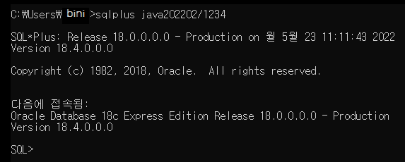 형식) sqlplus java202202/1234