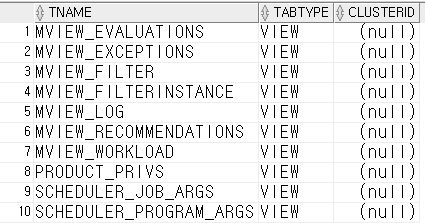 select * from tab where tabtype='VIEW'; -- 뷰 목록