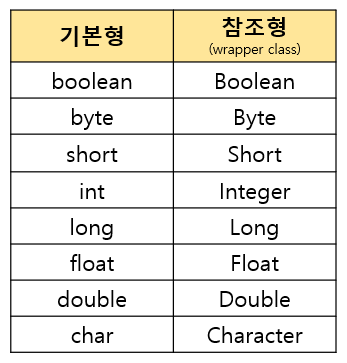 - 기본자료형을 참조형화 해 놓은 클래스들