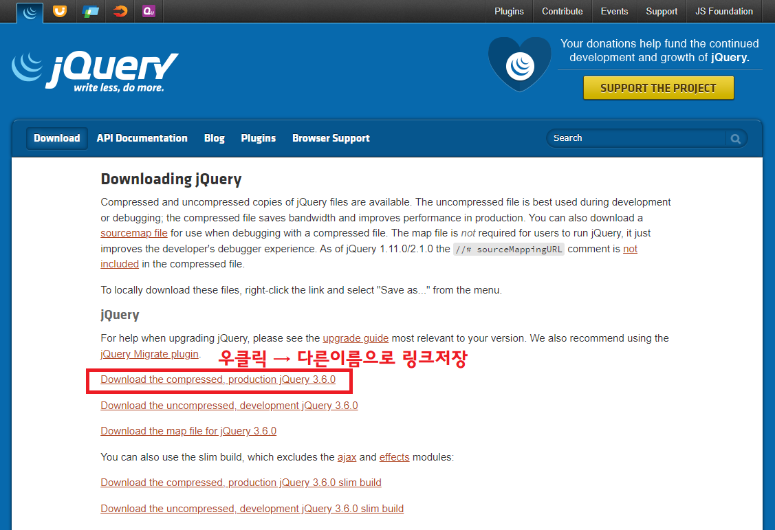 → 우클릭 → 다른이름으로 링크 저장 → jquery-3.6.0.min.js 다운
